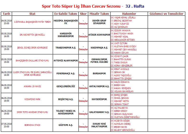 Şampiyonluk mücadelesi veren 4 takımın maçlarını yönetecek hakemler şöyle;