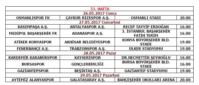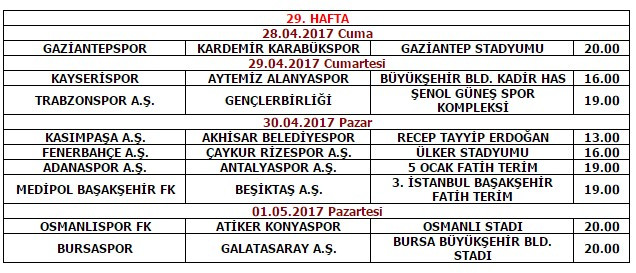 30. haftada oynanacak Beşiktaş-Fenerbahçe mücadelesi ise 7 Mayıs Pazar 19:00'da başlayacak.