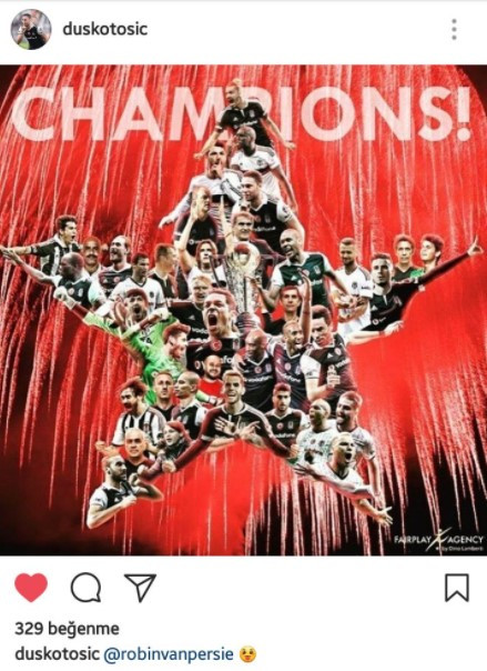 Beşiktaş'ın Gaziantepspor'u 4-0 yenerek şampiyonluğa ulaşmasının ardından futbolcular büyük sevinç yaşarken, Tosic Instagram hesabından Van Persie'ye gönderme yaptı.