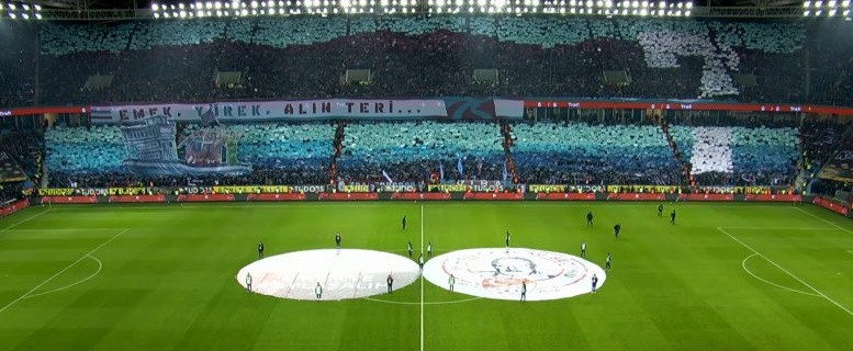 Trabzonspor taraftarı maç öncesinde ''Emek, yürek, alın teri, sene hep 2011'' koreografisiyle ince mesaj vermeyi de ihmal etmedi.