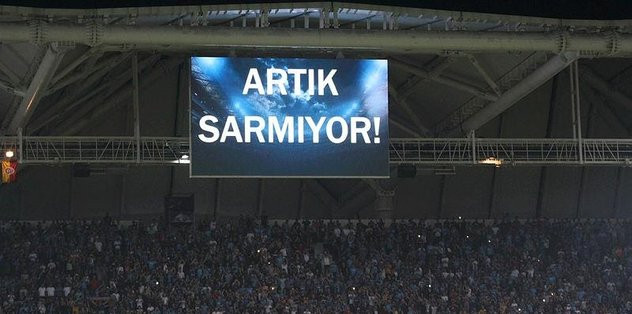 Futbolcular orta sahada kolbastı şov yaparken, skorborda ise "Artık sarmıyor" mesajı yazıldı. Bordo-mavililerin resmi hesabı bu anları twitter'dan "Artık sarmıyor" mesajıyla paylaştı.