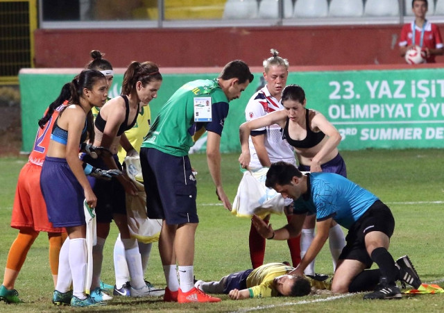 Samsun'da düzenlenen İşitme Engelliler Olimpiyatları'nda oynanan Brezilya - Büyük Britanya maçında Türk hakem, çarpışma sonrası dili boğazına kaçan futbolcunun hayatını kurtardı.
