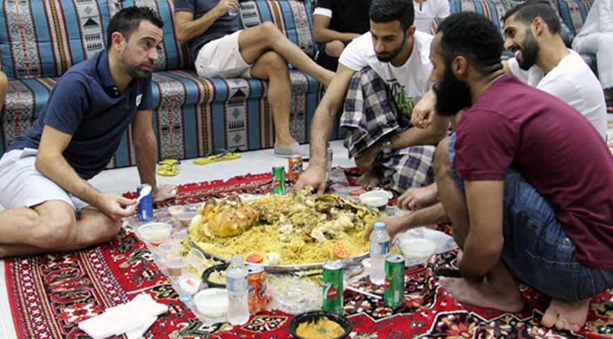Uzun yıllar Barcelona’da forma giydikten sonra Katar’ın Al Sadd takımına transfer olan 37 yaşındaki futbolcu, takım arkadaşlarıyla beraber tavuk pilav yedi. Xavi, Al Sadd’dan yıllık 10 milyon euro kazanıyor.