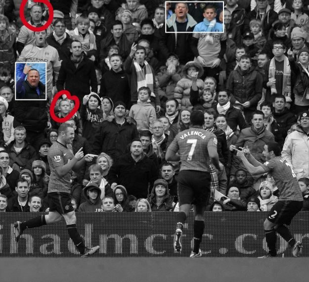 İngiliz yıldız Wayne Rooney 4 yıl önce Manchester United forması giydiği dönemde Manchester derbisinde attığı golün ardından yine aynı açıdan gol sevincinin fotoğrafı çekilmişti.
