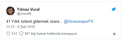 Başkan Mustafa Bozbağ yaptığı açıklamada; “Yılmaz Vural, Türkiye'nin çok önemli bir teknik adamlarından. Bundan sonra Giresunspor’a hizmet edecek. Hayırlı uğurlu olsun” dedi. Vural'ın hafta sonu Eskişehir'de oynanacak karşılaşmada takımın başında olacağı kaydedildi. Tecrübeli hoca ile yapılan anlaşmanın sezon sonuna kadar olduğu belirtildi.